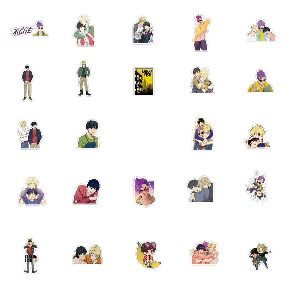 Наклейки изготовлены из качественного материала с яркой и детальной печатью, что делает их отличным способом выразить свою любовь к "Banana Fish" и оживить вашу коллекцию или предметы повседневного использования. Вы можете использовать их для украшения ноутбука, телефона, рюкзака, скейтборда, стены и многого другого.