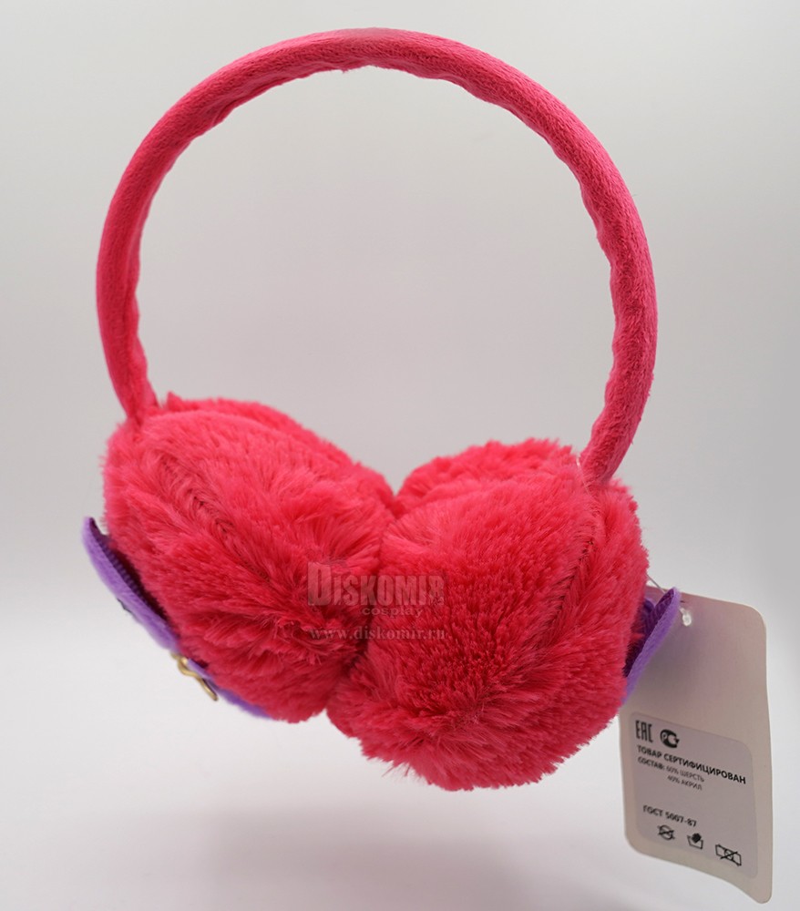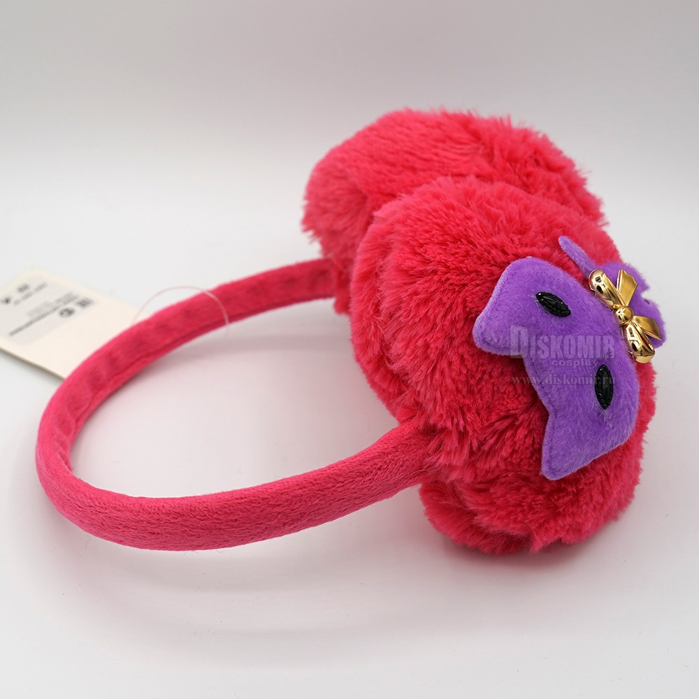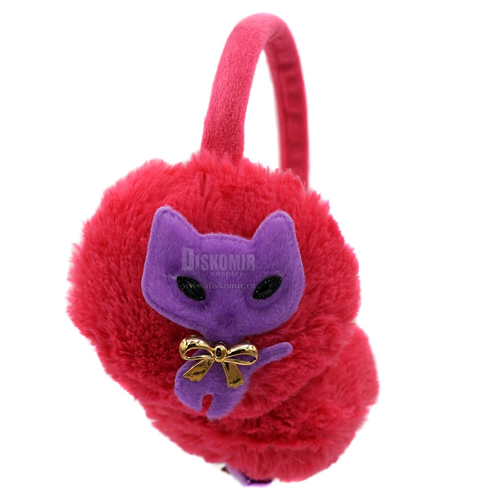 Наушники Зимние Теплые - Красные с Сиреневой Кошкой