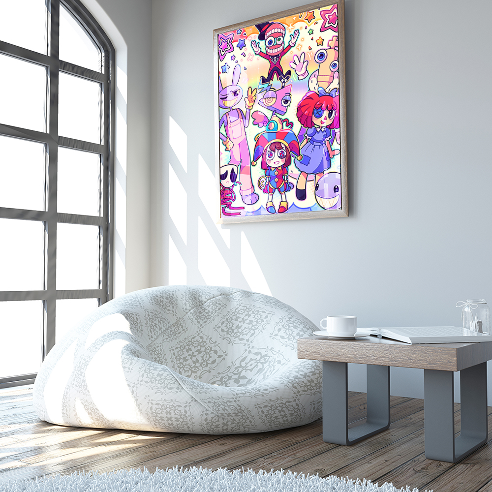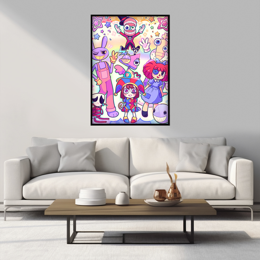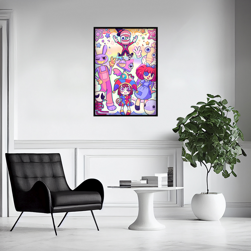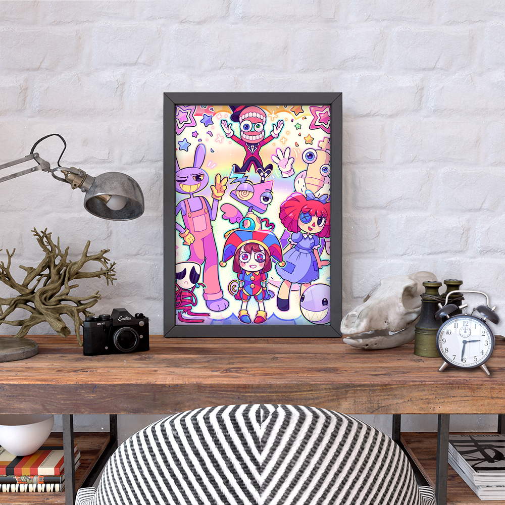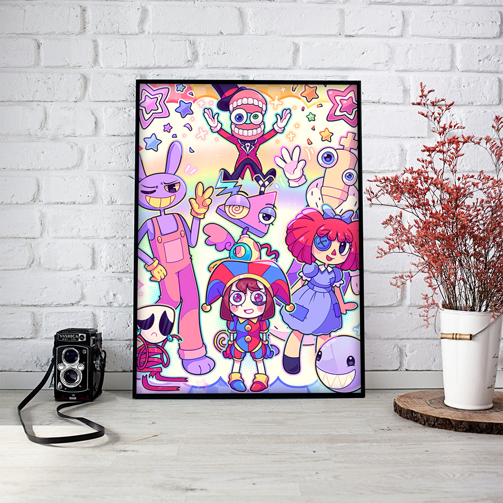 Плакат с героями мультсериала The Amazing Digital Circus, высокое качество печати, размер 30x42 см подходит для размещения на стене. Отлично подойдет для украшения детской комнаты или будет хорошим подарком для любителей мультфильмов.