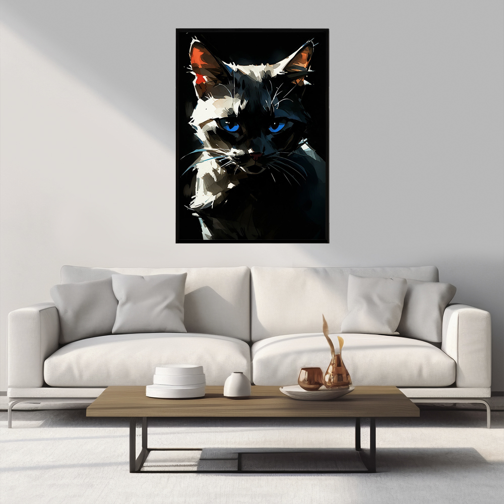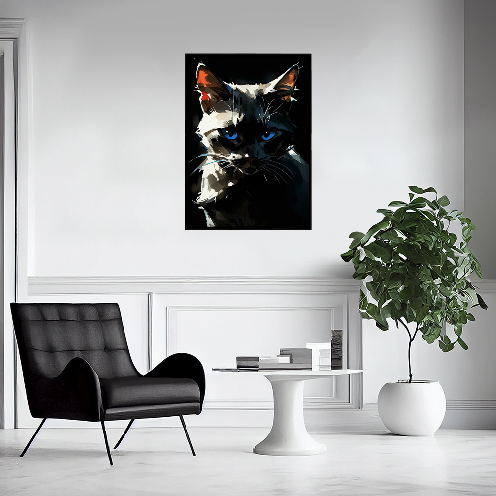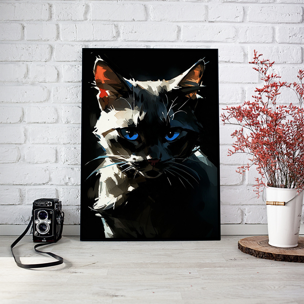 Погрузитесь в мир загадочной кошки с голубыми глазами с помощью интерьерного постера NeuroArt. Яркие краски и детали создают удивительную атмосферу загадки и таинственности. Подарите своему интерьеру неповторимый шарм с этим стильным постером.