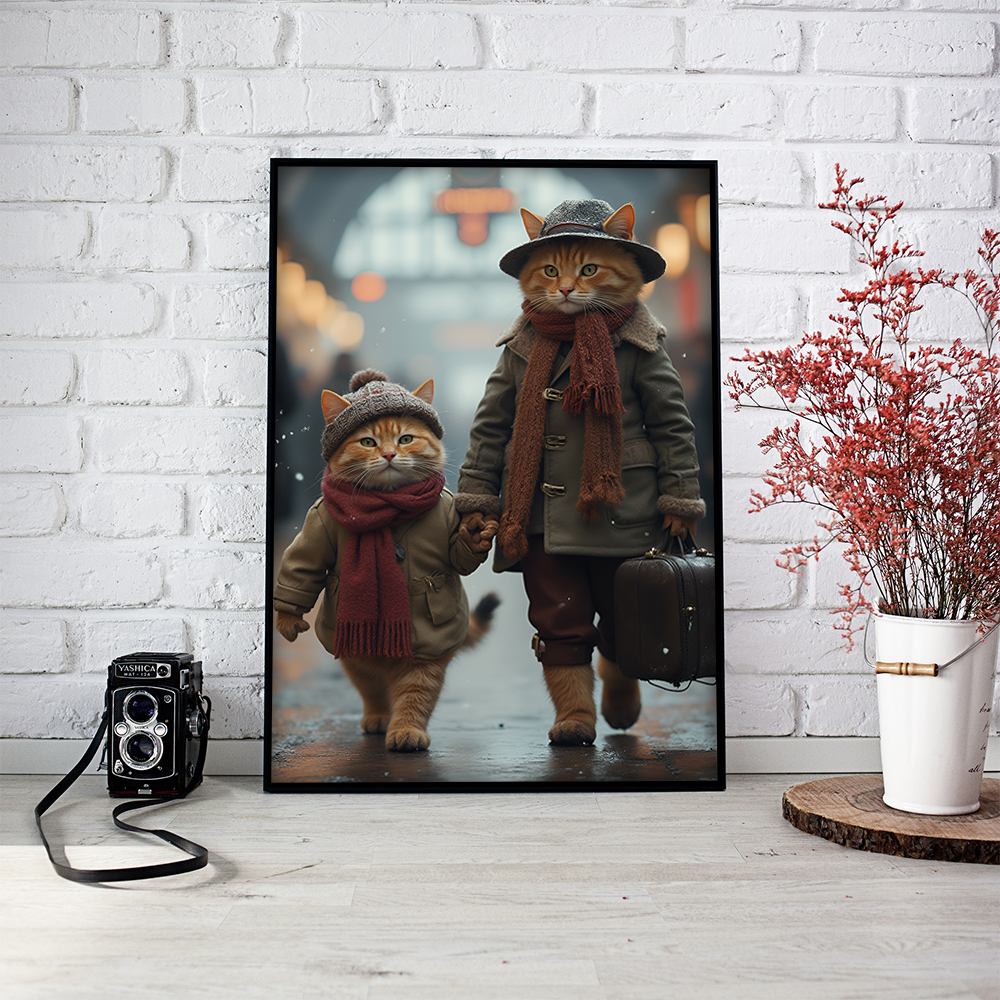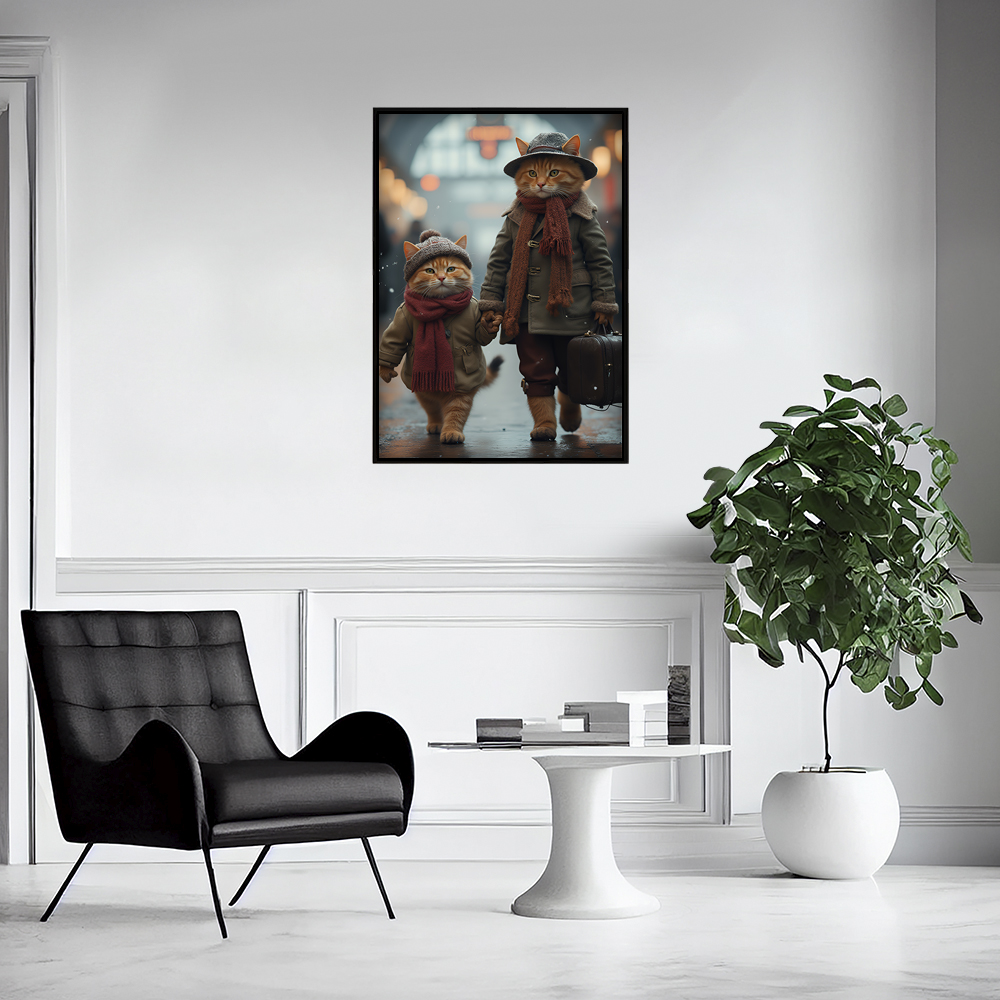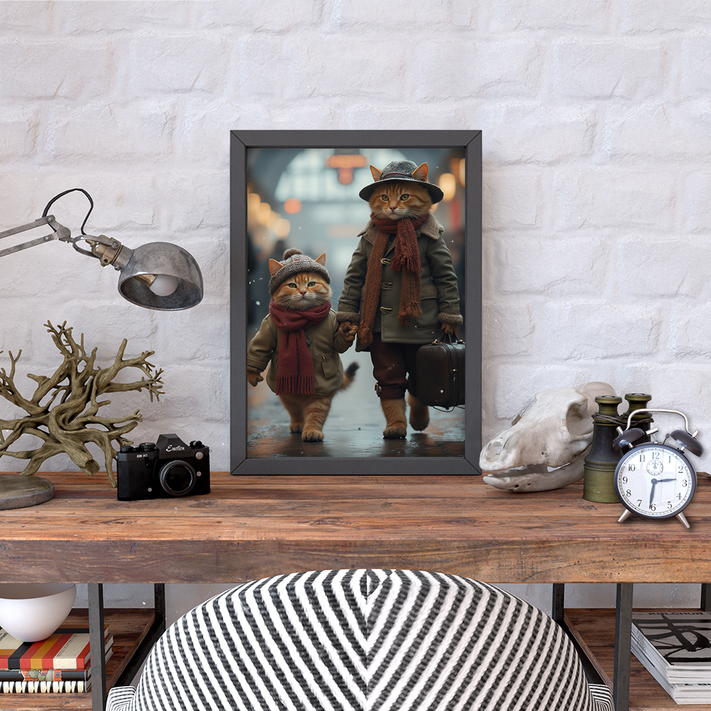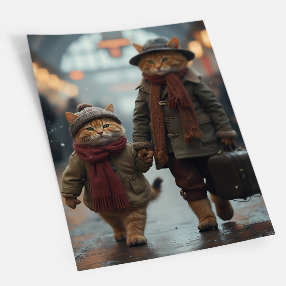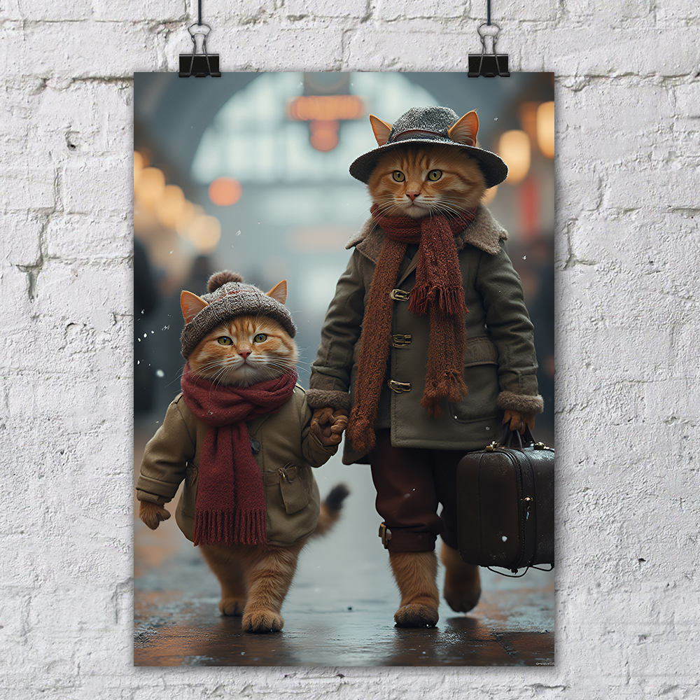 Плакат бумажный NeuroArt Коты на вокзале постер интерьерный No.019