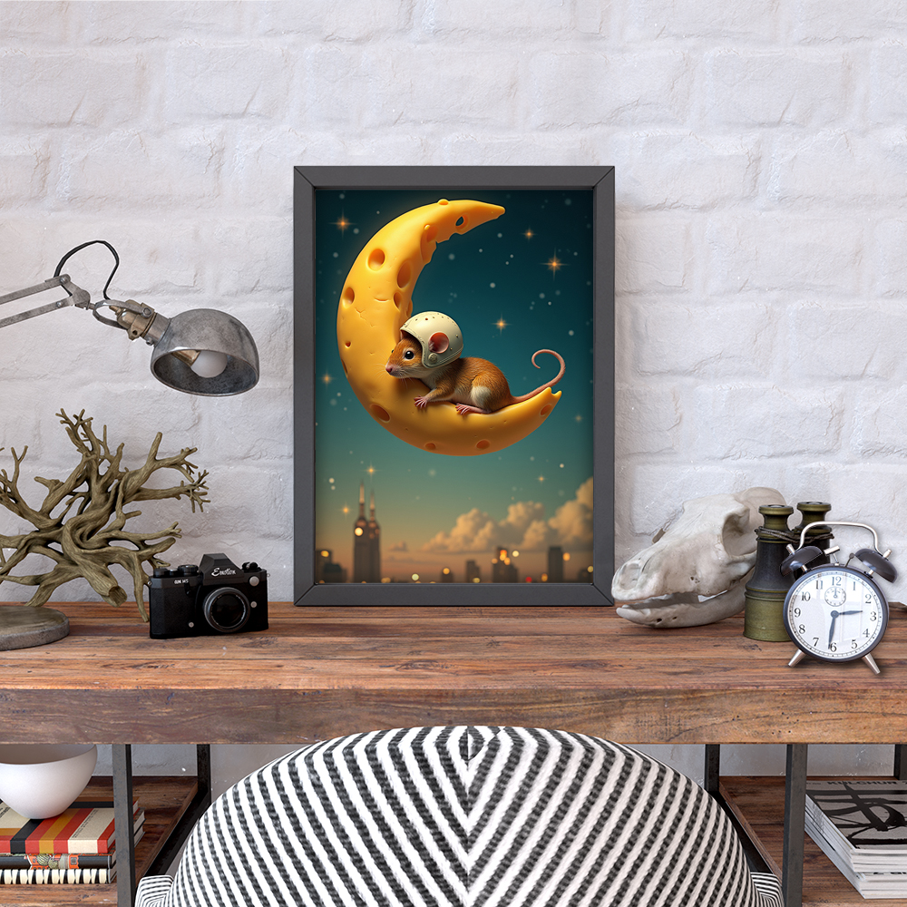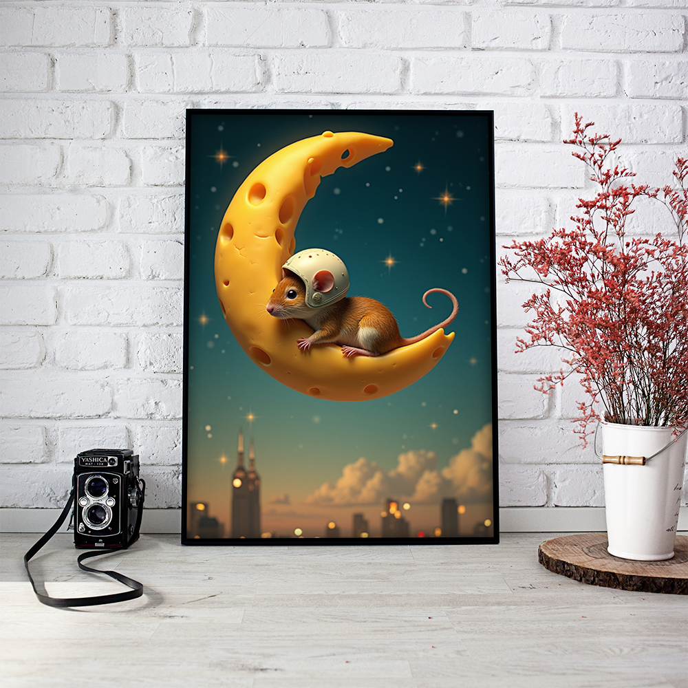 Плакат бумажный NeuroArt Сырная луна и мышь постер интерьерный No.027