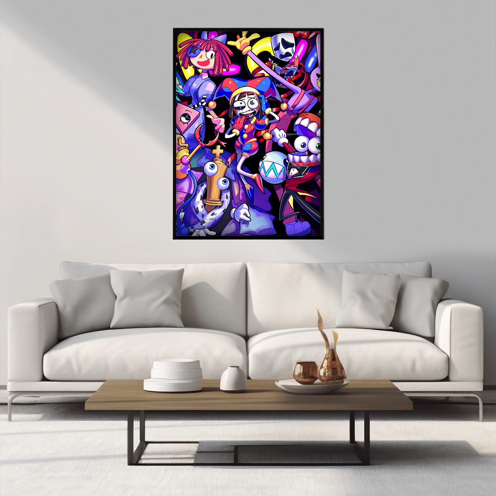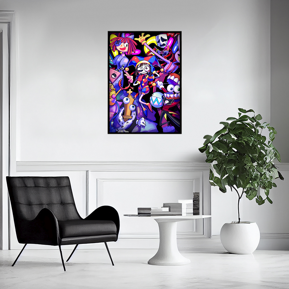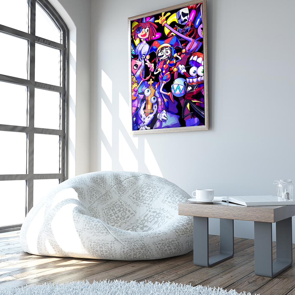 Плакат с героями мультсериала The Amazing Digital Circus, высокое качество печати, размер 30x42 см подходит для размещения на стене. Отлично подойдет для украшения детской комнаты или будет хорошим подарком для любителей мультфильмов.