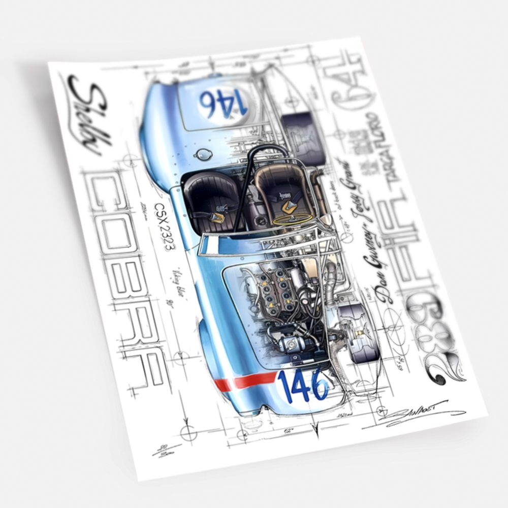 Постер Cobra Shelby 289 - это стильное и качественное дополнение к интерьеру любого автолюбителя. Изображение легендарного автомобиля Cobra Shelby 289 на фоне динамичного дизайна не оставит равнодушным ни одного поклонника скорости. Плакат выполнен на прочной бумаге высокого качества, что обеспечивает яркость и насыщенность цветов. Украсьте свою стену этим стильным постером и создайте уникальный автомобильный акцент в своем интерьере.