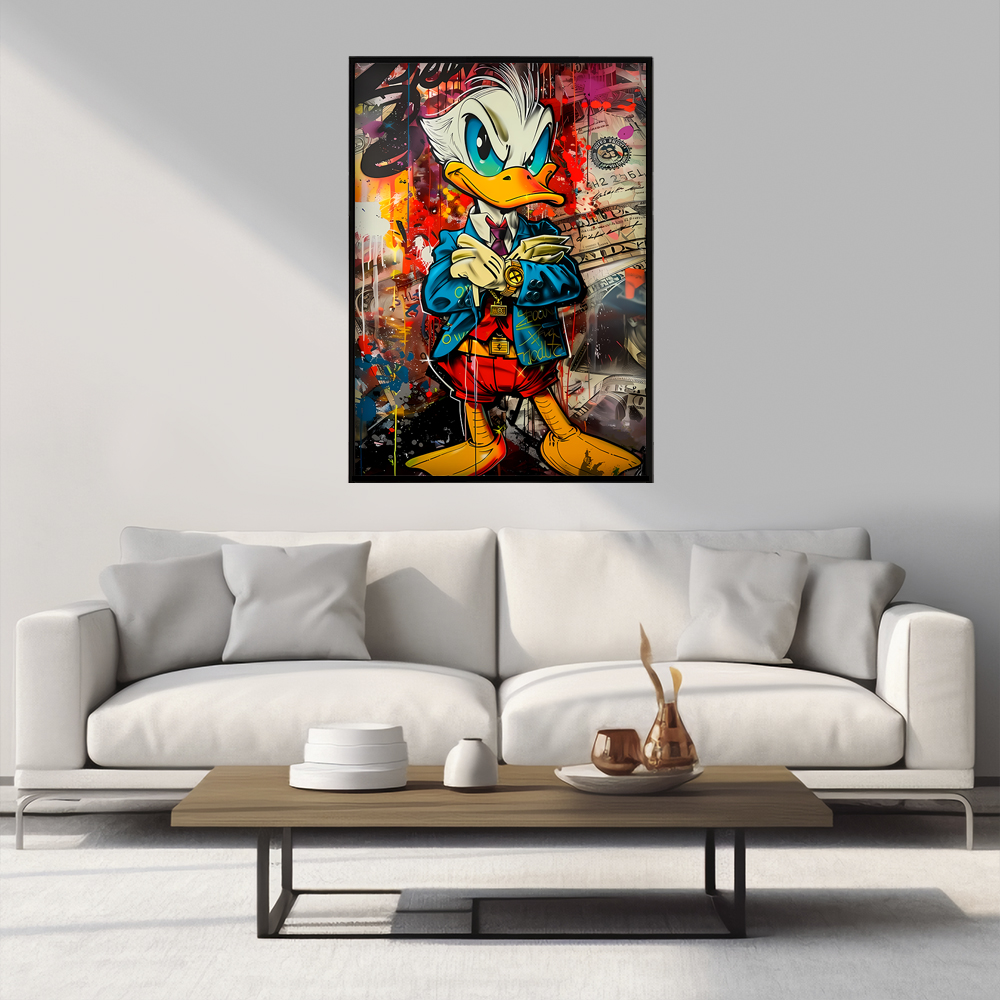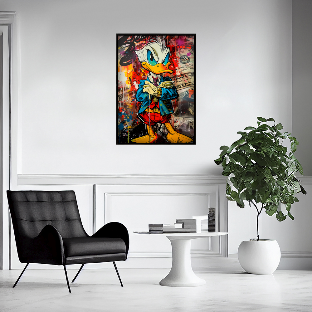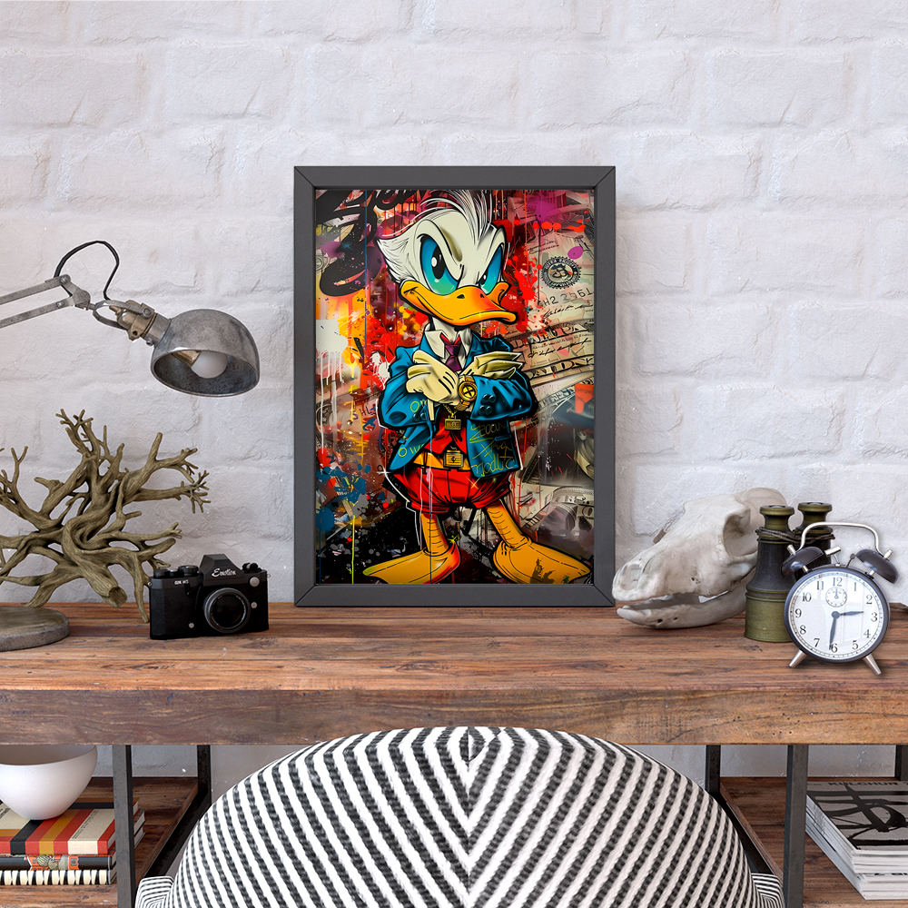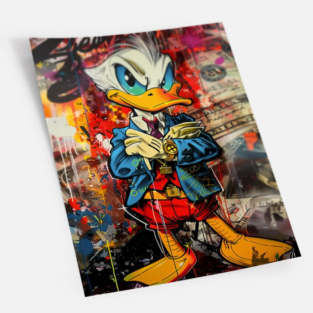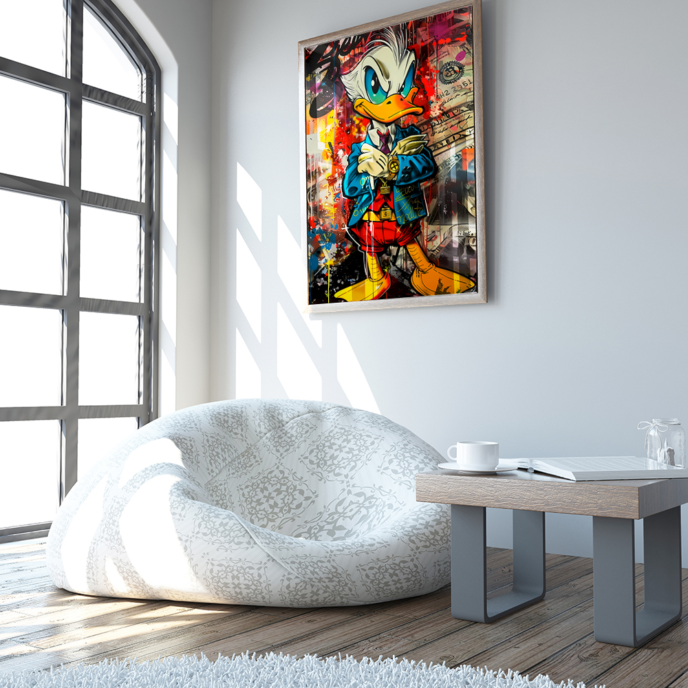 Постер "Скрудж Макдак Graffiti" - стильное и оригинальное украшение для вашего интерьера. Изображение знаменитого персонажа в необычном граффити стиле придаст вашему пространству уникальность и индивидуальность. Выполнен на качественной бумаге с яркими и стойкими красками. Постер легко можно повесить на стену в рамке или просто прикрепить клеем. Подарите себе или близким яркие моменты с любимым героем из детства!