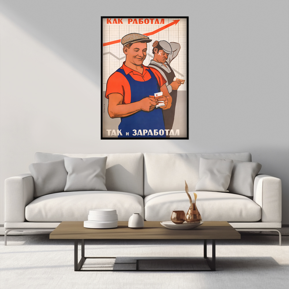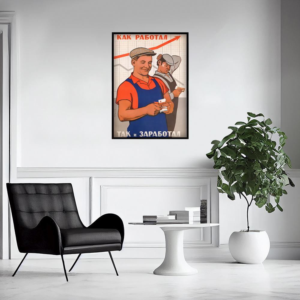 Постер СССР "как работал. Так и заработал" - это стильный и оригинальный элемент декора для вашего интерьера. Изображение выполнено в классическом советском стиле и напоминает о трудовой истории страны. Плакат отлично впишется в любое помещение и станет ярким акцентом в вашем доме или офисе. Подарите себе кусочек истории и вдохновения с этим уникальным постером на стену.