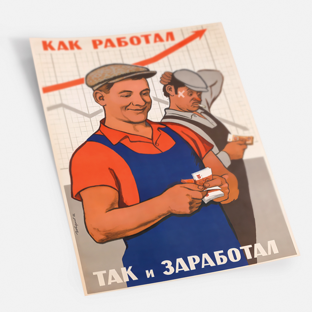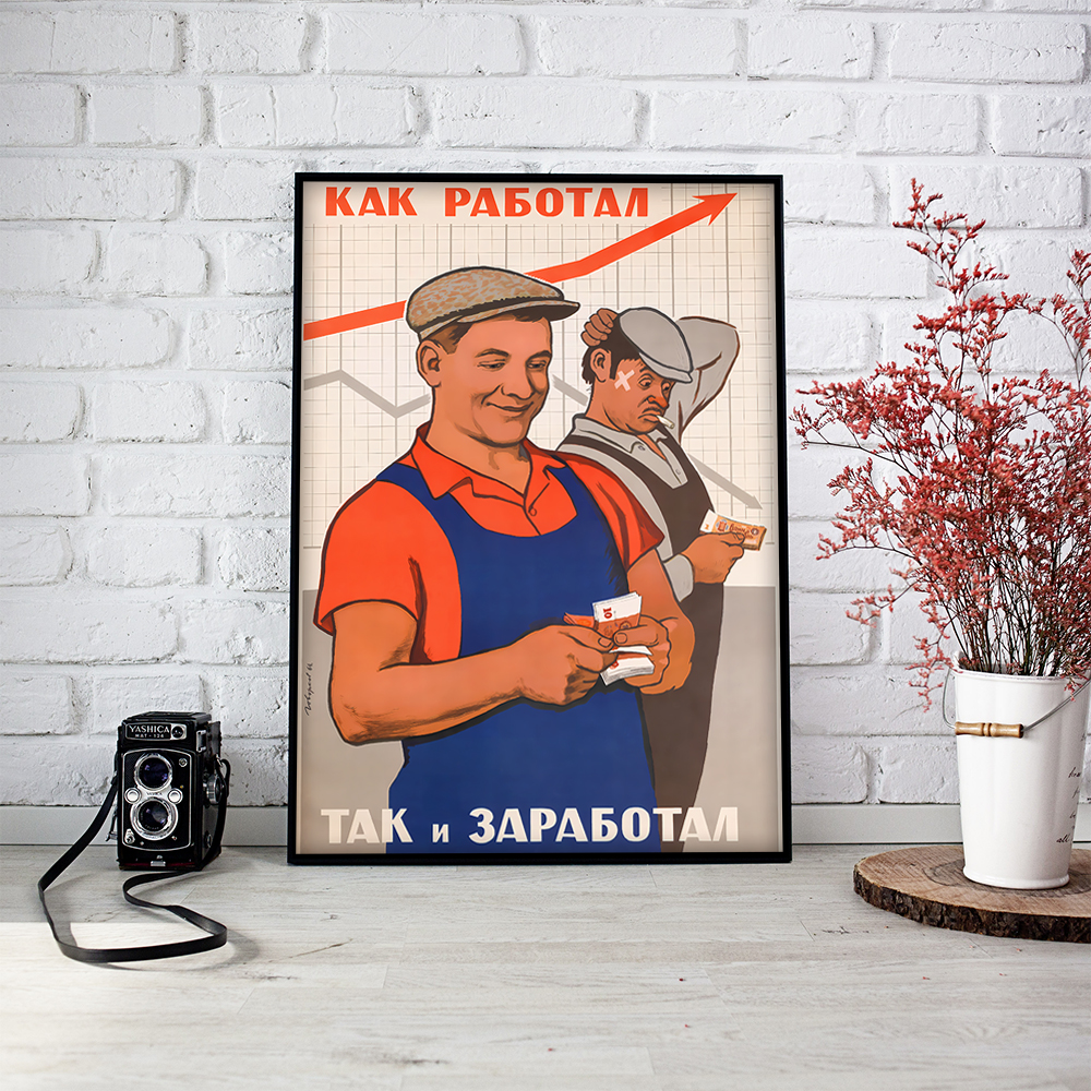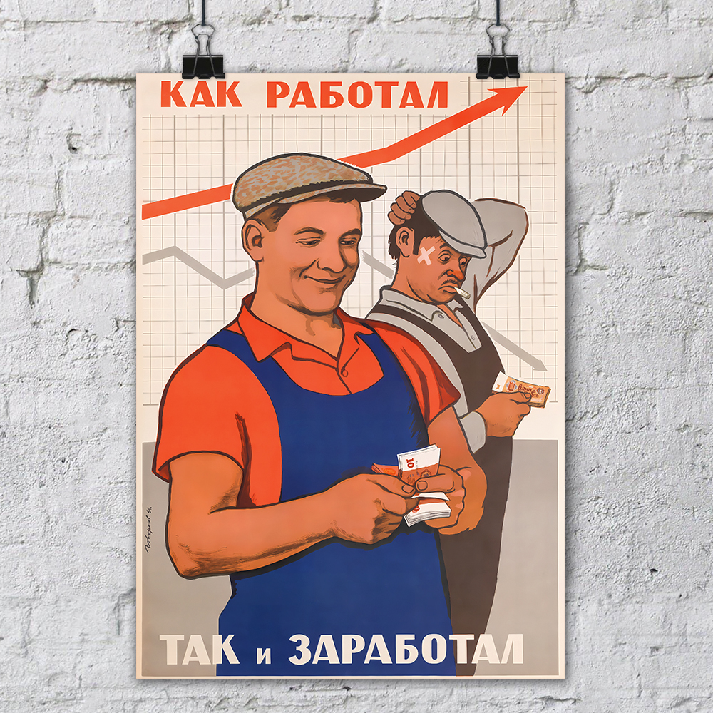 Постер СССР "Как работал. Так и заработал" / Плакат на стену