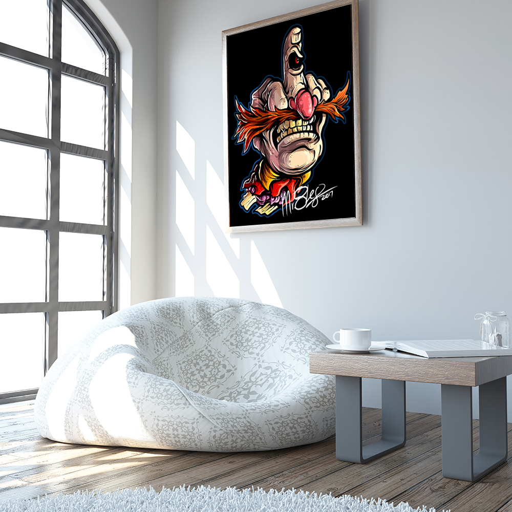 Постер "Злобный клоун" - это стильное и запоминающееся дополнение к интерьеру вашего дома или офиса. Оригинальный дизайн и яркие цвета этого плаката привлекут внимание и создадут атмосферу загадочности и таинственности. Идеально подойдет для любителей нестандартных и экстравагантных аксессуаров. Подарите себе или близким удовольствие от приобретения этого стильного постера!