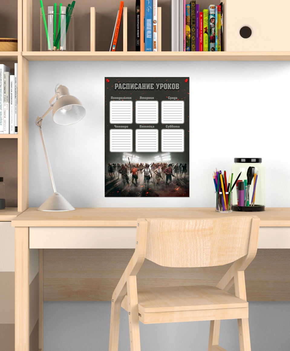 Школьное расписание с артом из PlayerUnknown’s Battlegrounds прекрасно подойдет для украшения рабочего места школьника!