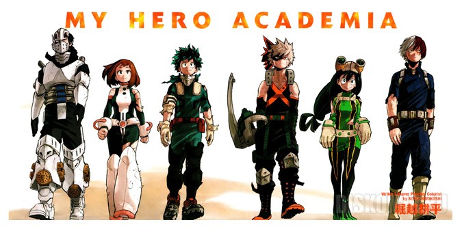 Манга, написанная и иллюстрированная Кохэем Хорикоси. Сюжет рассказывает об Идзуку Мидории, мальчике, родившемся без сверхспособностей в мире, где они стали обычным явлением, но всё же мечтающем стать героем. Он встречает Всемогущего - величайшего героя Японии и символ мира, который передаёт свою причуду Идзуку после признания его потенциала.