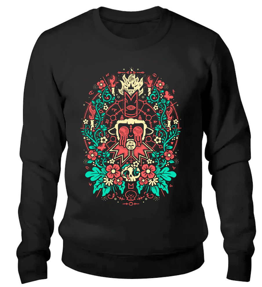 Погрузитесь в загадочный мир Cult of the Lamb с этим стильным черным свитшотом, который станет вашим лучшим спутником в любых приключениях. Изготовленный из мягкого и комфортного материала, он идеально подходит как для геймерских сессий, так и для повседневной носки. Эффектный принт, изображающий культовых персонажей, привнесет в ваш образ уникальную атмосферу игры и подчеркнет вашу преданность этому увлекательному приключению. Этот свитшот не только станет отличным дополнением к вашему гардеробу, но и является великолепным подарком для истинных поклонников.
