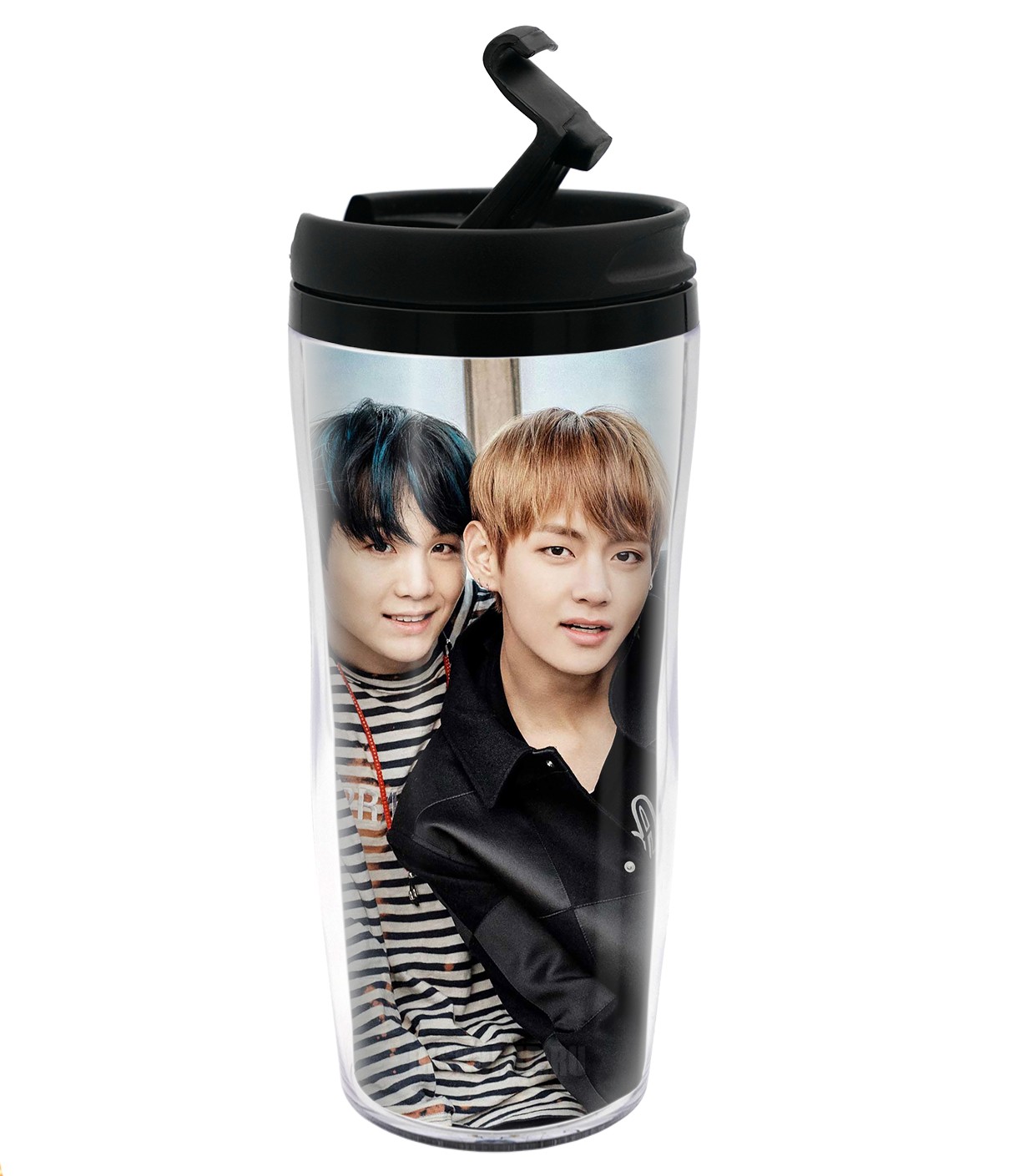 Термокружка пластиковая с участниками группы Bangtan Boys 350 мл.
