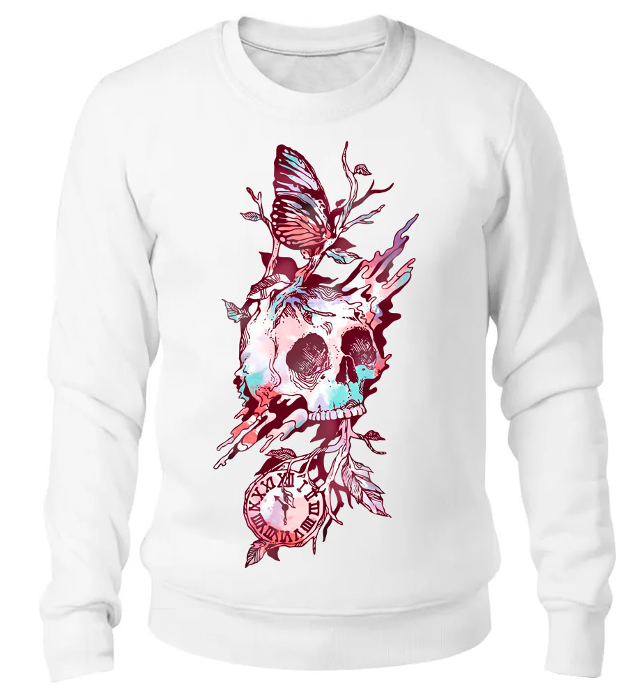 Удобные и стильные свитшоты для тех, кто любит комфорт и эксклюзивность. Черные и белые модели с изящным изображением часов в виде черепа и бабочки, сидящей на ветке, станут отличным выбором для тех, кто хочет чувствовать себя уверенно и свободно. Это не только качественная одежда, но и оригинальное произведение искусства, которое добавит изюминку в ваш ежедневный стиль.
