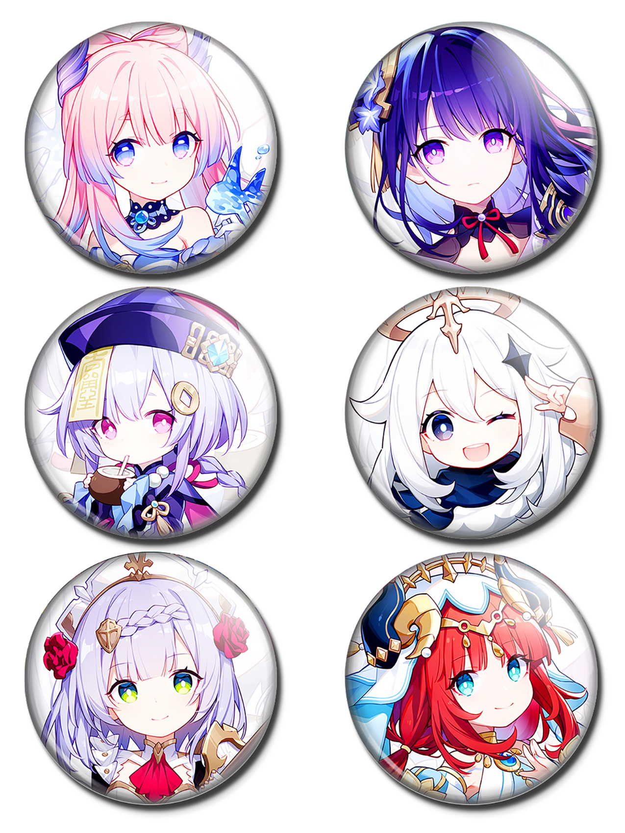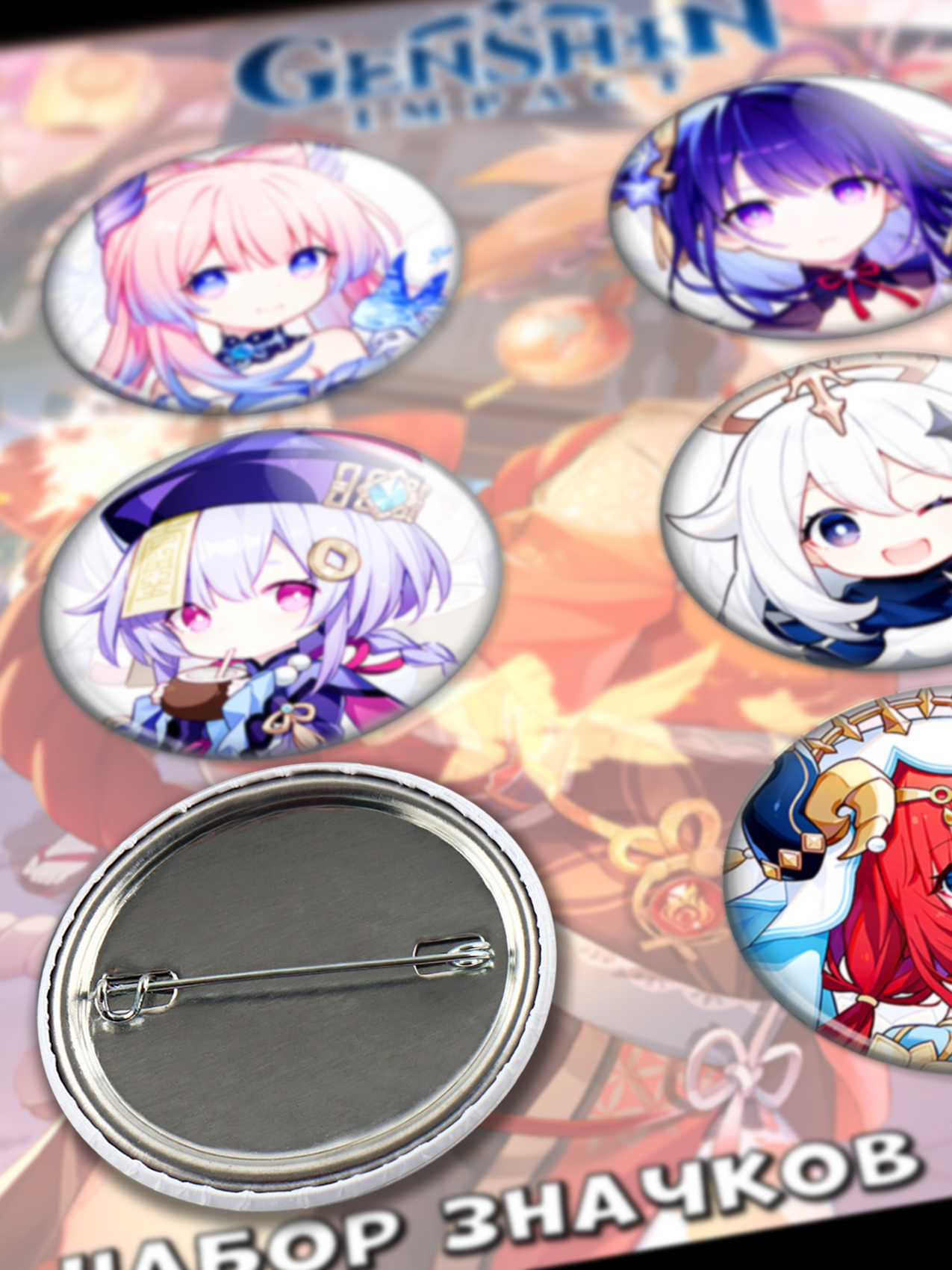 Значок - это самый популярный товар, которые покупают отаку. Их принято вешать на рюкзак или сумку. По тому какие у вас значки другие любители аниме, сразу смогут понять ваши предпочтения. И если вам нравится игра Genshin Impact, то вы можете добавить в свою коллекцию набор больших значков Геншин Импакт No.1 с персонажами игры.