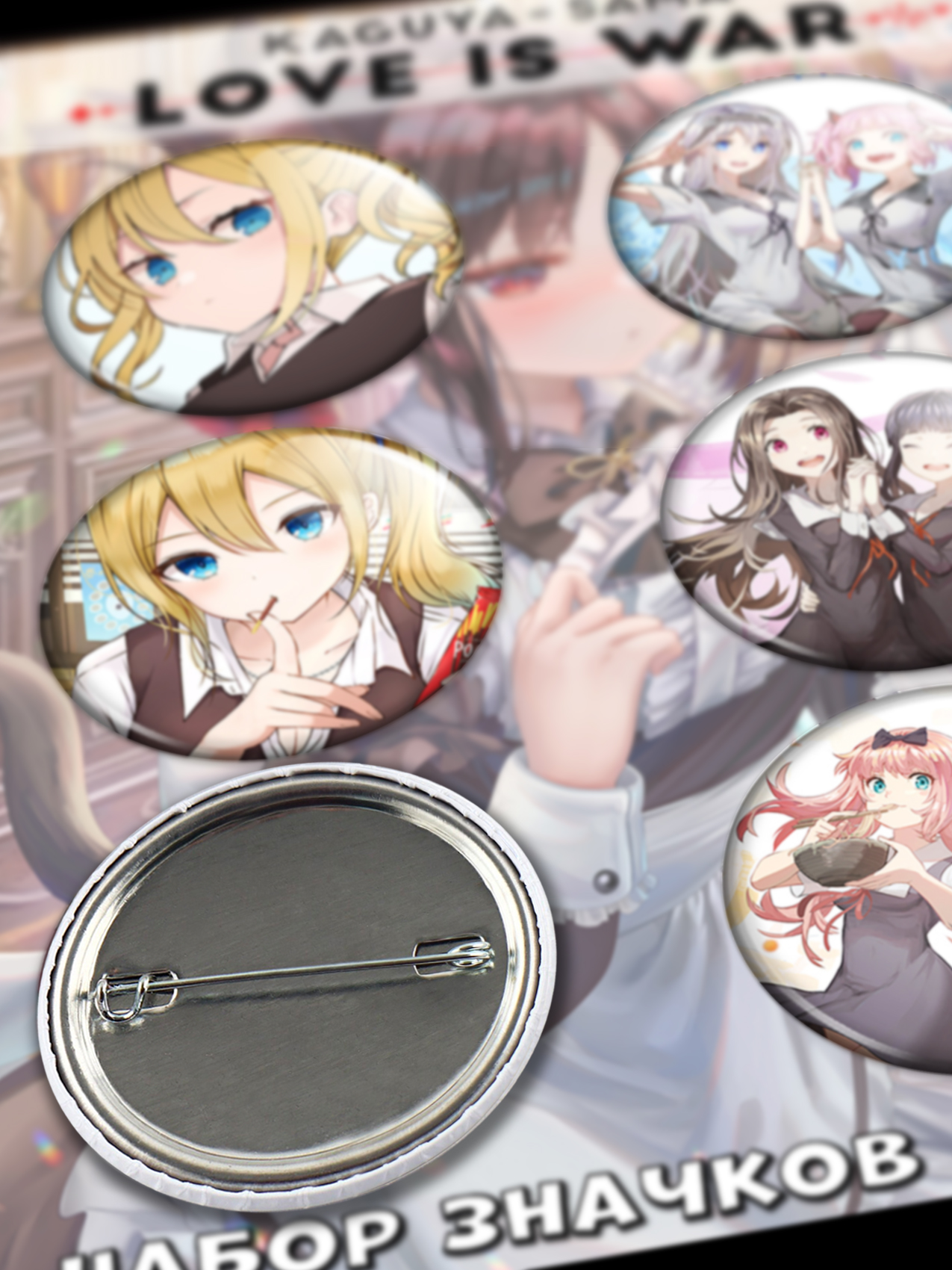 Набор аниме значков "Госпожа Кагуя: в любви как на войне No.3" - идеальный выбор для поклонников этого захватывающего аниме. В наборе вы найдете разнообразные значки, вдохновленные персонажами и сюжетом этого популярного сериала. Каждый значок выполнен с большой любовью к деталям и имеет яркую и качественную графику. Носите их на одежде, сумках или рюкзаках, чтобы выразить свою привязанность к этому увлекательному миру аниме. Набор аниме значков "Госпожа Кагуя: в любви как на войне No.3" - отличный способ показать свою любовь к этому сериалу и стать настоящим фанатом.